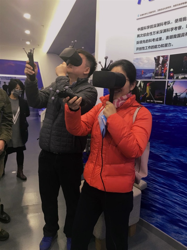 此次参观共有8个部分,其结合习总书记对中科院提出的“三个面向”和“四个率先”要求,展示了大量的数据图片、成果实物、理论模型等,并设置VR深渊科考、智能投票系统、毛笔字书写仪等体验互动环节,全面展现了中国科公司“出人才,出思想”的光辉历程。