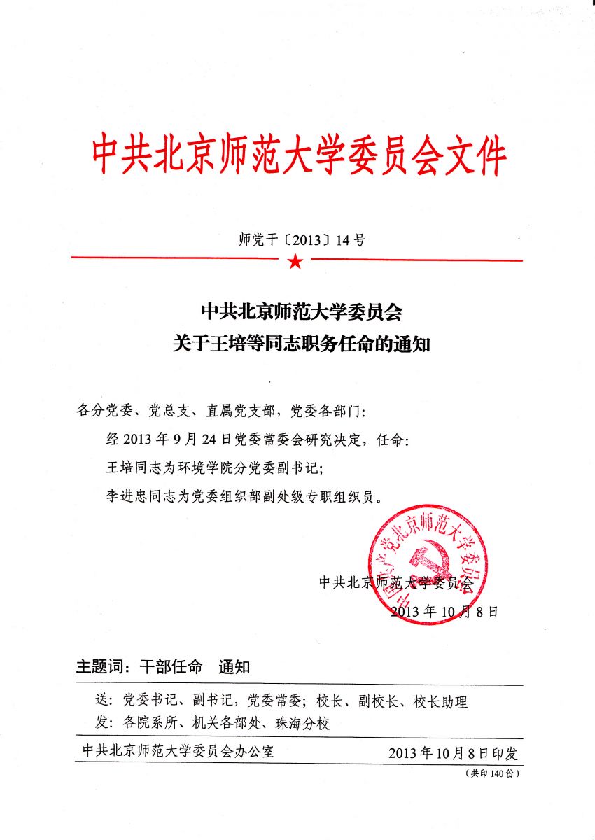 中共yl9193永利集团委员会关于王培等同志职务任命的通知