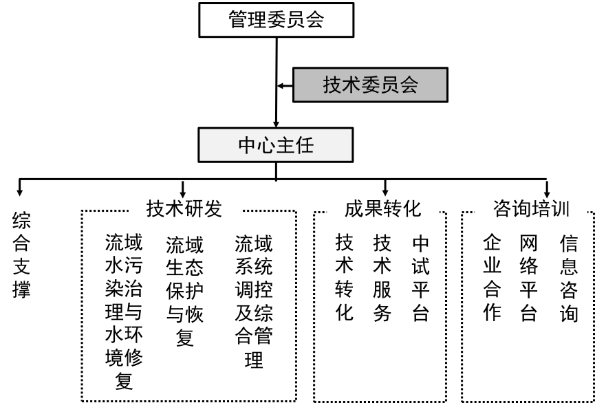 通过五年的努力,力争将本中心建成引领和支撑行业发展的创新高地,具体是(1)建成一流的工程技术创新基地、一流的工程化和产业化示范基地、一流的成果辐射基地,引领本领域技术发展;(2)形成流域生态修复的高新技术研发能力、流域综合调控技术咨询与服务能力。推动本领域技术标准化、设备高端化和品牌国际化。