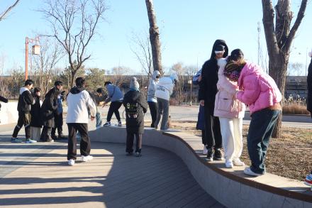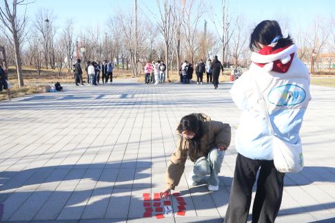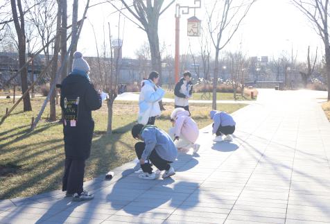 1到20被随机打乱到各个位置,同学们需要又快又准地找到它们并按照从小到大的顺序依次将它们翻开,此时组内的分工协作显得尤为重要,尽管天气寒冷,但是同学们依旧奋力奔跑,展现出了分秒必争的拼搏精神。