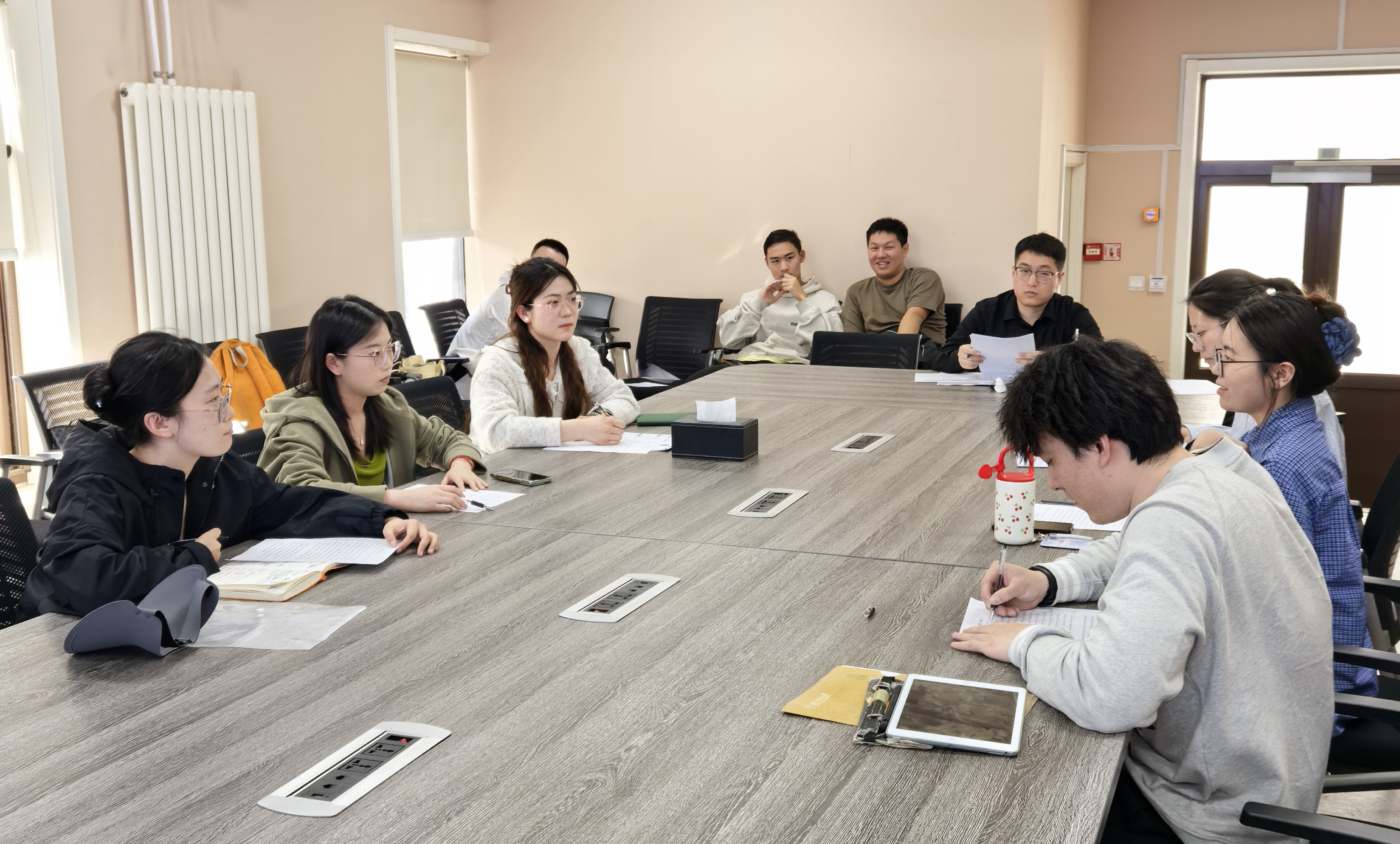 接下来老师将在场的同学分为两组,分别进行无领导小组的模拟,由另外一组同学进行观察和点评。