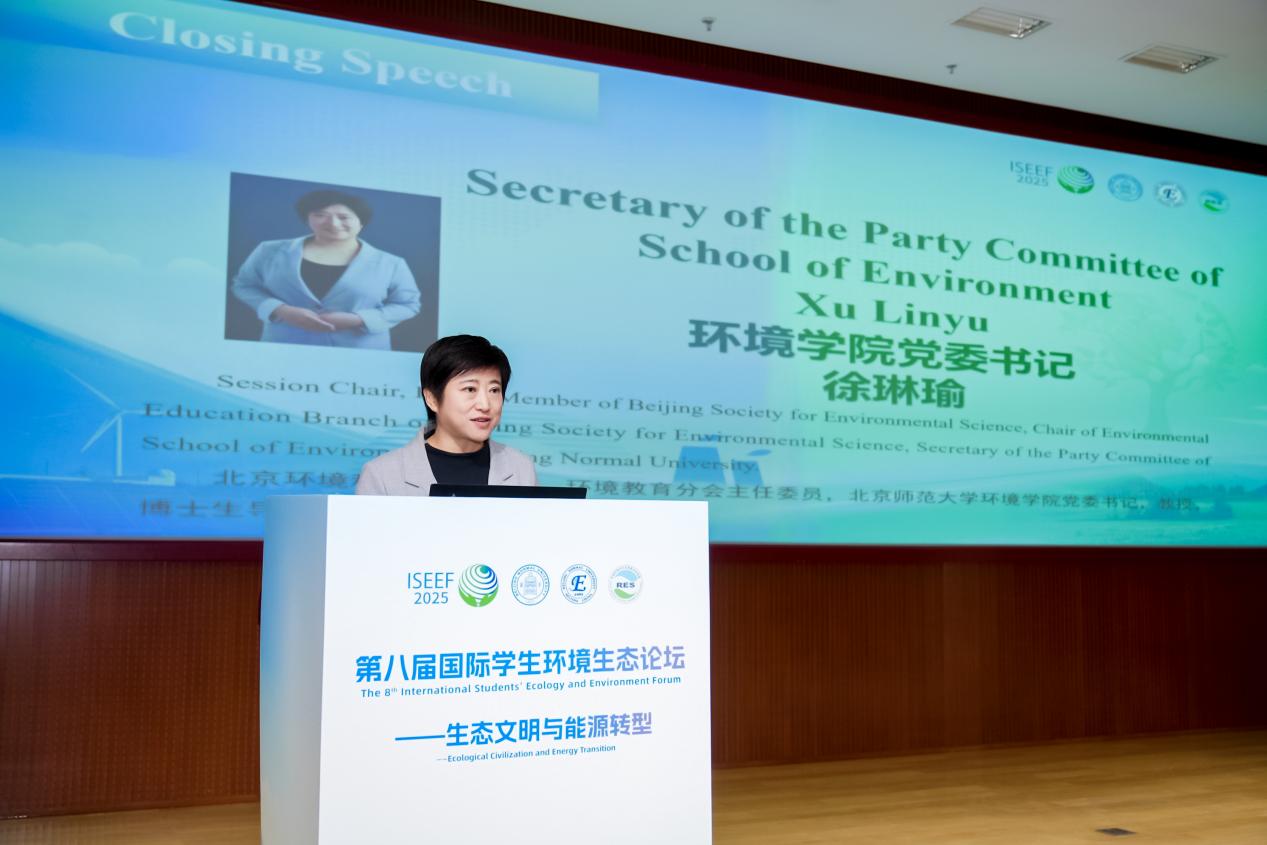 On November 29th to 30th, 2025, the 8th International Student’s Ecology and Environment Forum, themed "Ecological Civilization and Energy Transition," was held at Beijing Normal University. The ISEEF is a combination of online and offline form for global live broadcast. The conference was organized by Beijing Normal University and Beijing Society for Environmental Science, and hosted by School of Environment, the Office of International Exchange & Cooperation, Beijing Normal University, and the Environmental Education Branch of Beijing Society for Environmental Science the School of Environment.